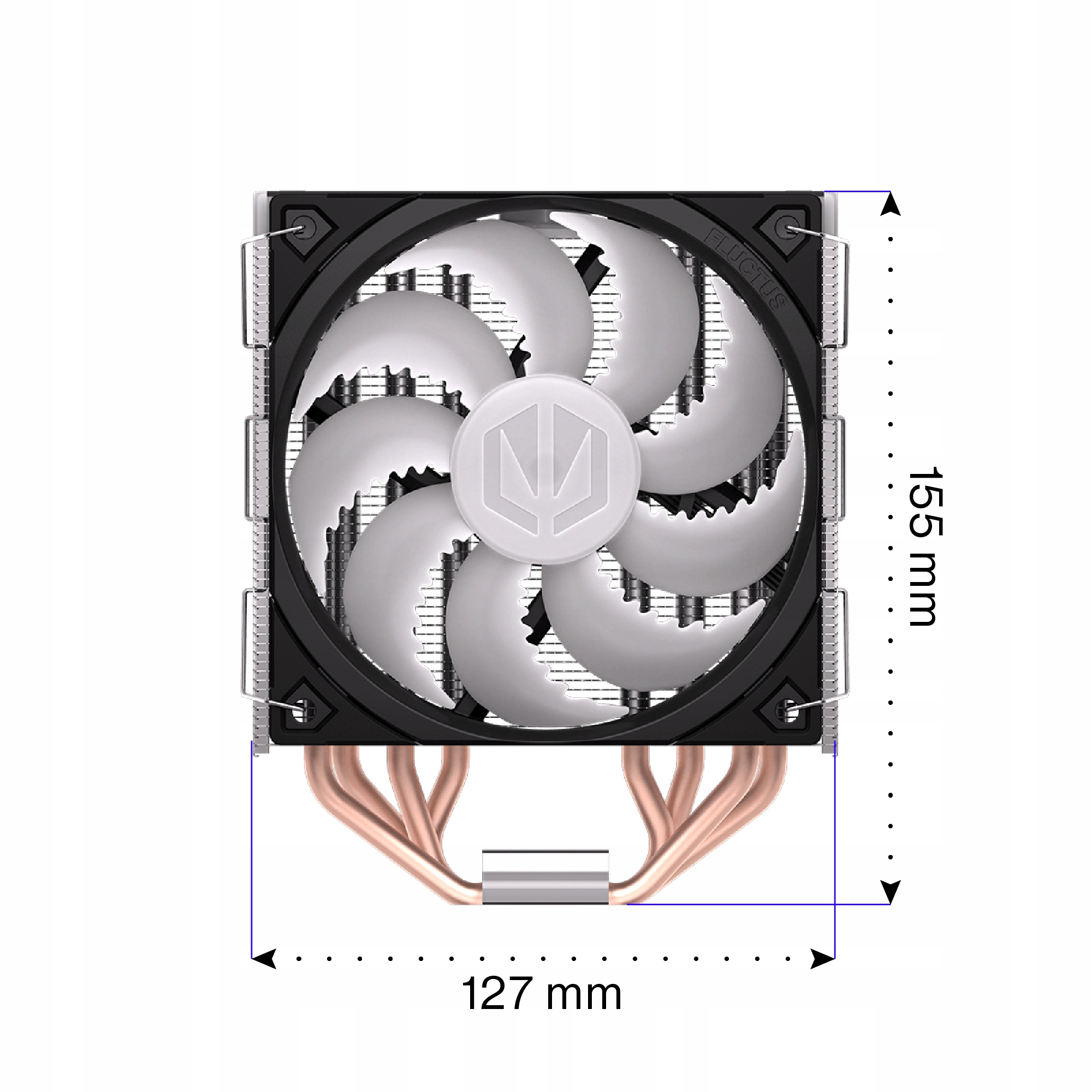 To zasługa asymetrycznego radiatora z gęstym użebrowaniem, który dobrze zbiera energię cieplną. Jego kompaktowa podstawa styka się z powierzchnią procesora, a cztery ciepłowody poprawiają odbieranie wysokich temperatur. Fera 5 ARGB jest też zoptymalizowana do jednokierunkowego przepływu powietrza, co zapewnia najlepszą wydajność chłodzenia. Kiedy Twoi znajomi zobaczą u Ciebie ten zestaw, zamówią taki sam dla siebie i to zanim zdążysz dać im coś do picia.